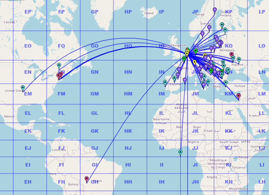 great fun! See map below. Mostly within Europe. Don't know why that